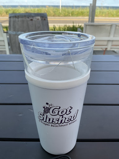 Read moreWe found this place on a whim while staying several miles up the coast and I couldnât be happier! The staff were all happy and extremely helpful and attentive. We arenât locals but have been to other parts of Florida and think we found our new annual vacation spot. I recommend getting the refillable Souvenir slushy glasses! they are a nice size, around 24oz. They are $10 plus $10 for your initial beverage and an additional $10 for each refill. I believe there were 10 frozen wine slushy options in addition to their wine collection. We got the Hurricane Matthew (suicide/ all flavors mixed) and a Mango sunrise as well as one that had watermelon/ lemonade and raspberry frozen wine slushy mixed (sorry I forgot the name). Anyway all were perfect! We sat outside in the cushioned chairs facing the ocean and were checked on by staff periodically and ended up getting a tapas plate. We ordered Kellyâs Afternoon Delight and a side of the mixed olives. The cheese and olives were a nice balance to the sweetness in the wine slushies. We plan to bring our cups and visit next year and each year forward since the area between Flagler/ St. Augustine has been our favorite! If you are in the area I definitely recommend stopping by and getting wine and a nice...