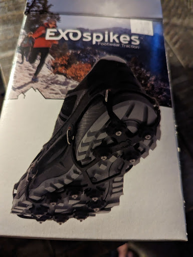 It would PROBABLY be an exaggeration to say Peace Surplus saved my life, but without it (and its supplies), I don't think I get to the top of Humphreys Peak, or even close. I stopped by last Sunday, the day before my hike, knowing that I needed to get some type of traction on my hindpaws. I considered getting poles (which I've been mulling for years - we're getting close there), but the spikes for the hiking sneakers seemed paramount. I located them very easily right off to the side of the shoe section. I honestly don't know if $62 for these is insane or not, but they made the difference the following day so I can't sit here and say they aren't worth it. An absolute gamechanger, and something I can use going forward in less dramatic adventures if there's icy/snowy conditions afoot.