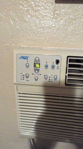 Pros Very comfortable beds. The air conditioner works excellently. The location is fantastic for walking around downtown. The room stays dark with the curtains drawn. Fridge/microwave for left overs. Free parking. One of the guys who checked us in was very friendly and helpful.