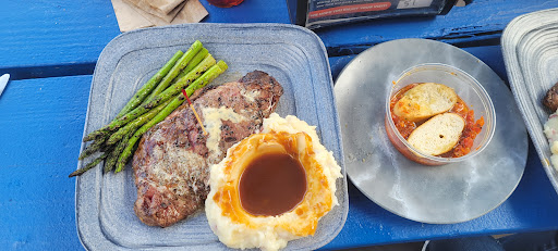 The Gondola ride finally opened up after the down pour and we made it on up. The ride was quick but the views were beautiful. We got off at the top and walked around a few minutes. It was pretty cold and foggy up there so we couldn't really look out. There is a bathroom located at the top and there are benches / tables set up.