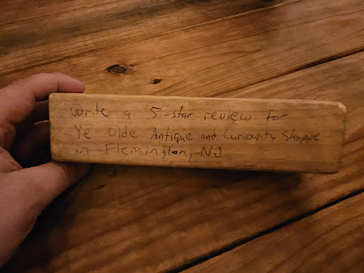 Whoever you are, long-lost Google Review Cheater of Flemington New Jersey, your ploy has finally worked. Someone is finally writing the review you demanded so long ago, when you stabbed your demands into toy blocks on your trip to the City That Care Forgot, and I hope it is everything you wanted it to be.