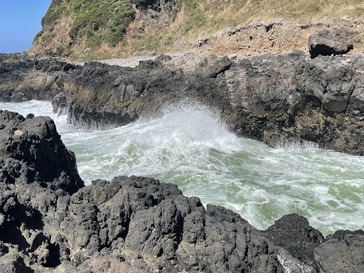 Says Willamette Weekly: "Yes, everything is named for the devil out here, whether Cauldron or Punchbowl or Basin or Churn. Everybody knows Devils Punchbowlāan impossible, hollowed waterfall basin that looks like it was designed by Alfonso Cuarón. But the Churn brings you closer to what death feels like from the inside. It's accessible only through an obscure turnoff at milepost 166.5 just south of Cape Perpetua, with a tiny parking lot home to a coffee window and the Restless Waters trailhead.