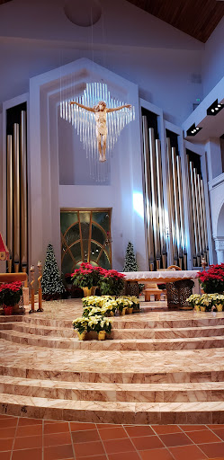 If you're in the area for vacation, this is the certainly most logical church for Mass. However, if you're like me and live here I would say don't even bother. I'm not even really sure to start - it's not the actual church that bothers me; it's the other disrespectful church goers. I've witnessed people cutting in line for communion, talking on their cell phones in the middle of the gospel, people sitting on kneelers, and people sprawled out on the ground sleeping. It's distracting and disrespectful and an awful representation of the Catholic faith. People hold conversations at normal talking level throughout Mass and no staff member feels the need to remind them that this is a place of worship and others are here to pray in peace. I have been Catholic my entire life and have attended Mass at multiple churches all over the country and never have I seen a more apathetic staff. But why would they ask people to be respectful? That's one less donation during the offertory; because let me tell you, don't come to this church expecting an inspirational message during the homily - week after week, the priest reminds you that they need money because they WANT a new organ. He'll also remind you nonstop that they have a gift shop where you can spend money as well; forget about donating to a deserving charity, this church wants the money all to themselves. There are too many good Catholic Churches in Orlando to deal with this headache...