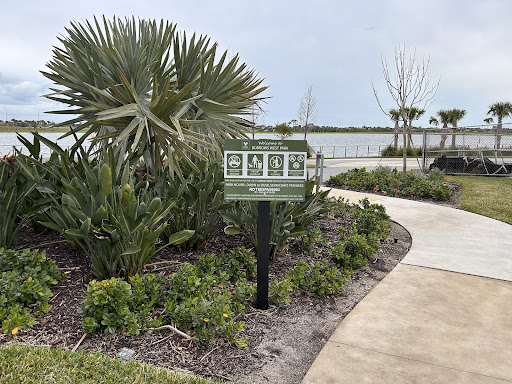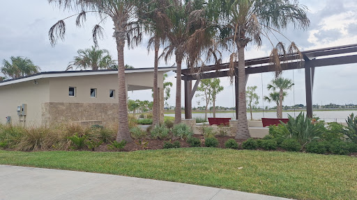 A nice walking park around a lake - tastefully designed - still under construction. This is at the corner of Viera Avenue and Lake Andrew Drive. It has limited parking with about 15 car parking spots and several smaller spots that I assume are for golf carts. There is a building with restrooms. The same structure has 3 swinging benches and a long concrete bench that overlooks the lake the park is centered around. There is a concrete path that circles the lake but due to construction, you cannot currently walk the complete path. The west side of the walkway seems to have several wider areas where you can relax off the main path. The construction parts around the 30-acre lake include an Olive Tree restaurant that has the basic structure already built and fencing around it and one of the hotels that has many of the floors built. There are going to be many more structures built along the south side of the lake that are in the future and the reason that this part of the path is closed off. There is not much shade are you walk around the lake but it is a good flat path to get your steps in. Overall, this is a nice park to relax and enjoy the view of the lake on...