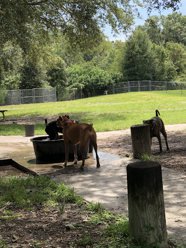 Read moreThis off leash dog park has a large dog side, and a small dog side. Both are "L" shapes around a retention pond in the center. There is running water, tubs, pools, and buckets available for Pup playtime, benches for tired human feet, and a good mix of shade and sun on both sides. They also stock poop bags for your convenience, right next to the gate. The large dog side has 2 plumbed bathrooms, and 2 human water fountains. It's a great local park!! Come visit and see...