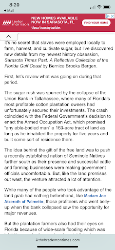 Read moreThe 1840 Gamble family plantation of over three thousand acres both north and south of the Manatee river was built to grow sugar cane originally then timber as well. This structure is the oldest in Manatee county. Originally from Richmond Virginia, the family had first settled in Tallahassee Florida with a successful sugar cane plantation there. The hardships were many in Manatee though, including a fire of the original sugar mill and changes in the market for sugar. The new mill was built to last with tabby concrete and clay bricks and became the most modern of its kind in all the southeast. The plantation owner's father was an engineer in Virginia and the son may have used those skills to build a canal to drain water from the fields. Visit this site for yourself and try to envision the massive effort required by all, both owner and slave, to live and thrive in...