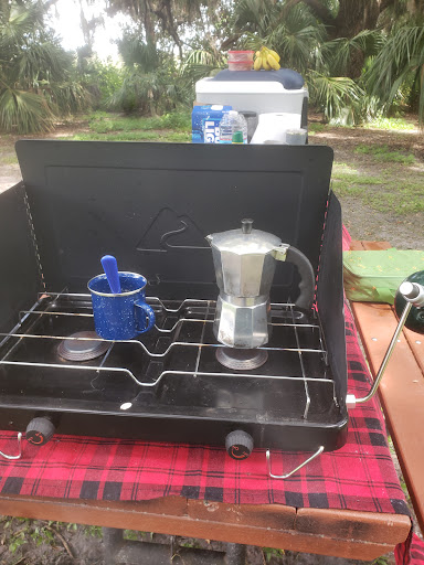 Walked about 6 miles total. We entered through the gate on Mcarthur rd. Campground is spacious. There was one r.v. and looked like 6 horse trailers camping. Did about 4 miles through the trails and oak hammocks to the south of the campground even off the trails it's still easy to make your way. Went back to the truck to eat then walked north on trail that borders the fence line. The open field is pretty over grown and when I talked with one of the equestrian riders she said that most of the horse trails on that side were over grown. Made our way down the tree line into the hammocks and to the kissimmee public use area. This is an area that's open to hunting certain weekends so you may come across hunters. There is also a game cleaning station though not sure how much longer the hoist will last the wood is almost rotted through. Also looks like a water tank at the clean station that is gravity fed and has to be filled before use though not sure who is responsible for that. I did not use the bathrooms or the shower while I was there as it was a scouting trip but even with the wind blowing them in our direction I didn't smell anything besides the country fresh scent from the...