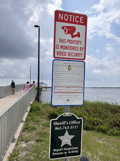 Read moreA very nice basic park where you may see some wildlife. Lake Okeechobee is sometimes called "Florida's Inland Sea," as it is the largest freshwater lake in Florida and the second-largest freshwater lake bordering the contiguous United States, after Lake Michigan. It is calculated to be 730 square miles in size. The Lake Okeechobee Scenic Trail is a 110 mile paved path for hikers, bikers, and horseback riders that encircles the lake. It is difficult to determine how many parks are along this trail or the lake but this particular park is the northernmost one and can be found just south of the 98 and 441 intersection and at the northmost point on the lake. The “park” is a parking lot, restroom building, and observation pier. The parking lot looks to have about 60 spots. The bathroom building was fairly clean. The pier was nice and offered a nice view over the lake underneath a large covered structure built into the end of the pier. There is a little grassy area on both sides of the parking lot and about 6 covered tables spaced around the park. If you get a chance you may want to drive a little along the lake on the shell road to the west. I saw 2 alligators cruising on the water’s surface when I drove along the road. There is a turnaround and a boat ramp at the end. Overall it is a nice place for a rest and a good place to look...