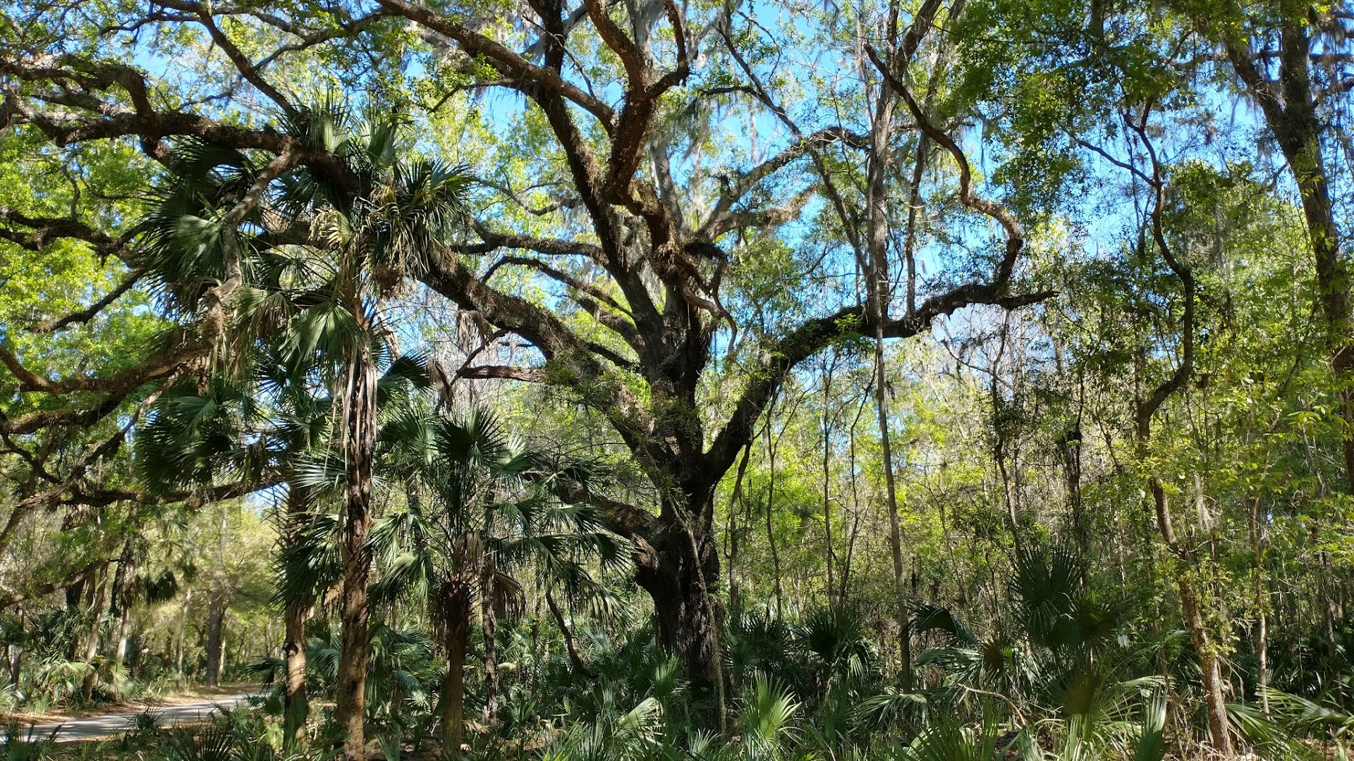 Read moreBecause the CG is so wooded I could barely get any satellite signal, and it cut out a lot because of tree branches blowing in the wind. We were only stopping in for a night on our way heading home. It was a relatively cheap (for Florida) site. Would not do more than one night because of connectivity issues. There is good privacy between sites, and sites were fairly easy to get into even at 30 feet. Bathrooms were dated and though clean the floors were very sandy all the time. The walkways are all flooded with sand, and it gets tracked inside. They don't clear off the walkways. There is an unmarked walkway which we discovered leads to the day use and boat ramp, as well as the playground. There are wooden boxes that have trash cans inside, but most aren't marked, they just look like storage bins. Nothing to indicate on most that there are trash cans inside. CG is about 1.5 miles from the entrance. There is a day use area about another 1.5 miles down the road with a visitor center. Don't take RV's there. And it's a long walk from the parking lot to the VC. The VC is ok, nice movie, but some of the exhibits are out of order. They have binoculars you could sign out if you forgot yours. There are some trails there, as well as a tower you can walk up to with views of the prairie. We only say wild horses. No bison. There are some other viewing areas, but you have to drive out of the entrance and drive down the highway to secondary entrances to view. We were only there for one night, so we didn't get to do that. Place would be good for 2 days but not much more. We camped at Paynes Prairie Preserve State Park in a...