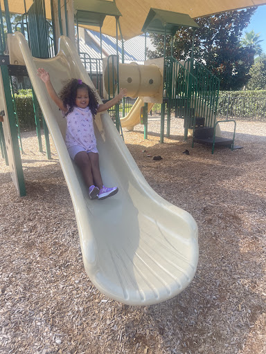 Decent sized play area with enough toys to keep the kids busy. Not much for toddlers but, when is there? Play area is full of wood chips which isn't ideal though. They hurt kids feet if barefoot and sometimes even when in flip flops as they stab through, so make sure you are in shoes. If you have access, the pool is very nice and clean every time I've been. It is handicap accessible and has a walk in area for those who are very young or not good swimmers. There are also nice clean bathrooms here next to a large covered patio area for parties or gatherings. Finally there is a simple dog park area and a large grass field suitable for sports. All in all, a great area to have fun in a...