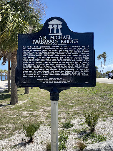 Read moreTwo Dollar Bluff, prominently featured on the U.S. Geodetic Map of 1887, was considered a navigational aid for ships on the Indian River. Located on property owned by settler and citrus grower A.B. Michael, this bluff was an Ais Indian midden and became the site for the Michael Family dock. By 1927, archeological materials in the midden, including shell, pottery shards, and bones, were almost gone, taken for use as road material. The dock was replaced with a narrow, wooden bridge with a metal swing span that crossed to the community of Orchid. This bridge allowed the Indian River citrus to travel from the Orchid Island groves to the railroad, and it opened up the northern part of Indian River County to tourism and land development. During World War II, the bridge was limited to those who lived on the island, and the bridge tender was tasked with checking the credentials of those who crossed. In 1970, the old bridge was replaced with a causeway, a high-arch bridge over the main channel, and named the Wabasso Bridge. In 2020, it was renamed the A.B. Michael Bridge. This bridge leads directly to the beaches of the Treasure Coast where remnants of the 1715 Spanish Silver Fleet are...
