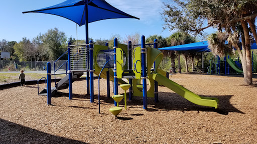 Read moreI love the fact that most of the playground is shaded by trees and tarp coverings. Because of the shade most of the playground equipment doesn't get so hot that the children can't play on it. That said, all of the spinning type of equipment is in full sun which makes it unusable during hot weather because it gets too hot to play on. Another drawback is there is only 1 picnic table for parents and grandparents to be seated on the playground area. Also the restrooms can be kind of far to walk to for small children. In spite of all that it is one of the nicest playgrounds...