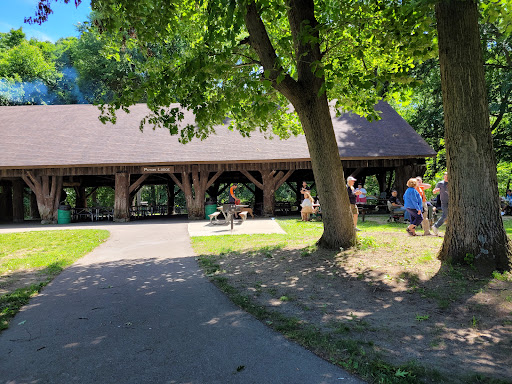 Very nice clean place with lots of wildlife to view especially on the adjacent river trail.Numerous duck species, and numerous other bird species including hawks, eagles, herons and more are present. Other animals including deer, ground hogs, turtles, garter snakes, rabbits, and muskrats just to name a few can be seen, and on days when the river level is low you can see numerous species of fish as well. There are four nice pavillions with bbq and clean porta potties, very nice paved walking trails and some through the tree line, and an awesome river view with canoe/kayak accesibility and fishing along the river trail on the opposite side of the park. Theres also an open area for kite flying, a baseball field, basketball court, stretching and strengthening equipment, kids swing/slide play area, tennis court and a fenced in dog play area with pavillion. Great place to take a jog or walk, to roller blade or bike through, have a picnic, or just to take the kids out of the house for the day to enjoy...