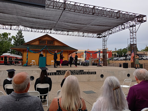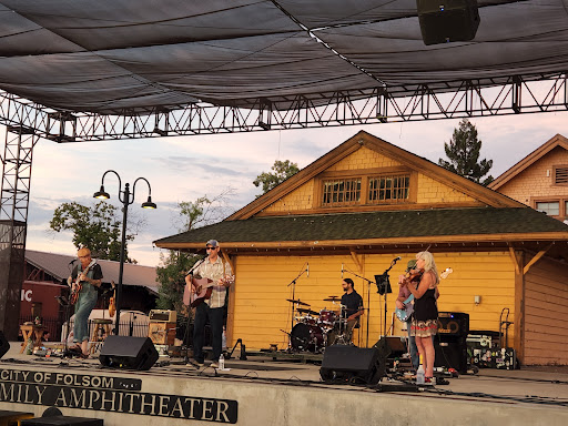 The Zittel Family Amphitheater is a wonderful outdoor family friendly concert and performing arts venue in the heart of the Folsom Historic District. The stage is right next to the Historic Folsom Train Station and Railroad Museum (a vintage railroad passenger car), that makes a nice backdrop behind the stage for memorable photos. Between the stage and the cement & artificial grass seating is a space for dancing and getting your groove on!!