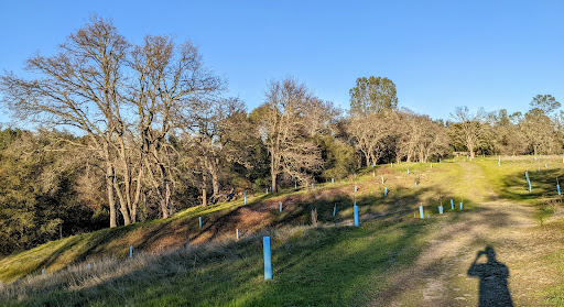 Willow Hill Reservoir Community Park is a small, suburban wildlife park with picnic tables, a floating fishing platform, a parcourse, a small children's playground, and a trail (partly paved; mostly gravel) that rings the reservoir. It also has restrooms, but they are often locked. This park is contiguous with Folsom High School, which is at Prairie City Road and Iron Point Road. Easiest access to the park is from Barnhill Drive, the first right after Folsom High. A free parking lot is across the street from the park. The high school's track team often practices...