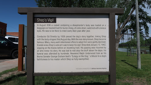 During the summer of 1936 a sheepherder fell ill while tending his flock and was brought to the St. Clare Hospital in Fort Benton, Montana. A nondescript sheep dog had followed the herder into town and soon set up a vigil at the hospital's door. A kind hearted nun who ran the hospital kitchen fed the dog during those few days before the man died. The herder's family in the East requested that his body be sent back home. On that August day the undertaker put the body on the east-bound train for shipment to his waiting relatives. As the gurney was rolled out onto the platform, a big gaunt shepherd dog with watchful eyes appeared out of nowhere and watched as the casket was loaded into the baggage car. Attendants later recalled the dog whining as the door slammed shut and the engine slowly started to pull away from the station, then head down, turning and trotting down the tracks. On that day the dog, later named Shep, began a five-and-a-half year vigil that was only broken by his death.