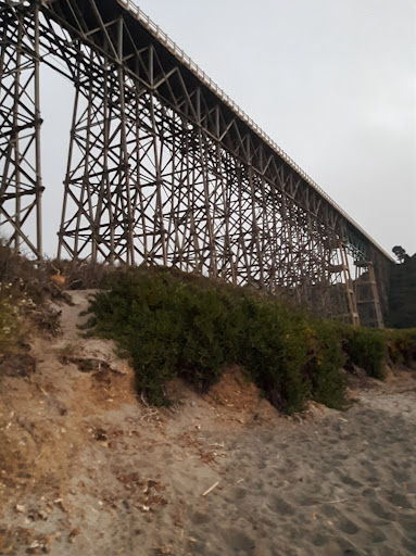 It opened to traffic in 1944. Because it was built during World War II when concrete and steel were in short supply for civilian use, the bridge was built of salvaged wood treated with a copper azole preservative. It is the only remaining wooden bridge on California Route 1.