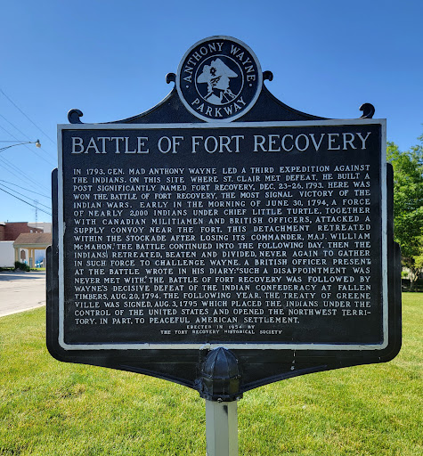 Fort Recovery is a site of Historical significance which documents soldiers, pioneers, and Native Americans who were killed in a battle along the former Wabash River in 1791. It is also more commonly known as "The Battle of 1,000 Slain." An alliance of Native Americans flanked and attacked General St. and his troops which included other settlers traveling with them. Losses were so heavy that at one point St. Clair commanded his remaining men to retreat. His was the most casualties in battle during the Native American Wars with the encroaching pioneers. Afterward, General George Washington from his location in North Washington, Ohio (now known as Cincinnati) had Arthur Sinclair stripped of his rank.