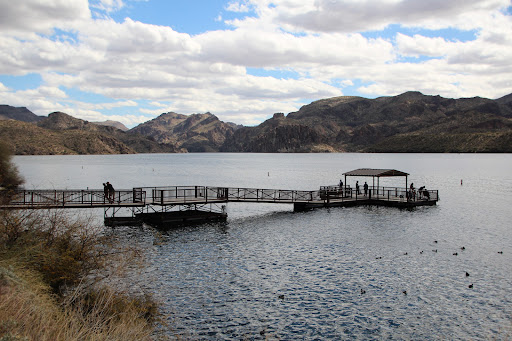 Read moreThis is the hub for the two boat launches, boat trailer parking, and the smaller number of swimmer parking. There are some limited beach spots, enough room for about 8 to 10 pop up awnings to fit. That part fills up by about 10 on the weekends. There's a few small pavilions but beware that the rangers enforce the fire bans for tonto national forest and charcoal is often banned in the summer. It also requires a tonto pass to park here and is best bought at one of the gas stations in east Mesa. There's also some cliff jumping out past the eastern edge of the parking lot. If you want to tail gate, Butcher Jones is closer and has better access...