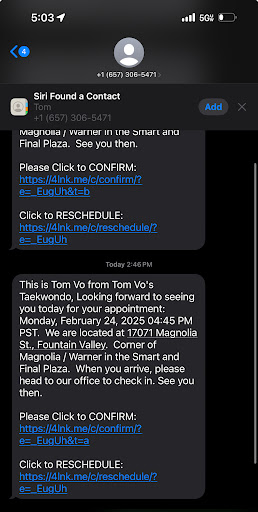 Read moreThe first time I found out about Tom Vo's Taekwondo was through college when I moved into the area. Coming from my background, I was the person who usually doesn't speak out and always found myself in the corner or at home alone. However, that changed when I decided that I should try something out in college while I had the time.