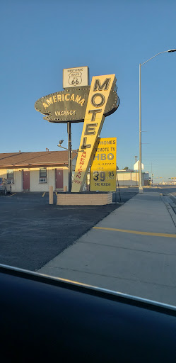This is a Route 66 historical motel. Very dated. It is dirty enough for us to decide using our own pillows and made us sleep in our sleeping bag on top of the bed. It is not the worst motel we have being in, however they need to wash better their pillows and not only the pillow cases. The air filters clearly needed to be clean. The whole room smell like chorizo because of the air from the AC. The location is very good to see some of the neons from the motels at this town of the route 66. It had free wifi, free parking (the traditional in front of your room of a motel), and a fridge. The price was one of the best ones and that made us pick it, however, there is another historical motel in the same town that has an extra cool vibe plus great neon, plus is renovated and you can park your car like inside of a garage near your room. If I stay in this town again I would try the other one. Forget about the free breakfast. They have a fridge in their office in theory with some breakfast inside but it has a lock and they did not open it the morning we were there. pets allowed if...