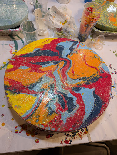 ย ย ย Read moreThis was a total blast. The vibe is laid back and fun. Staff is friendly and helpful unlike some other DIY places in town that I have stopped patronizing. I did the large lazy Susan and it turned out stunning with the exact colors I was going for. Here is a photo of it just after pouring the paint. They finish it for you with the hardware and sanding and a top coat if you wish. My 3 friends' projects all turned out beautifully and we all had so much fun!...