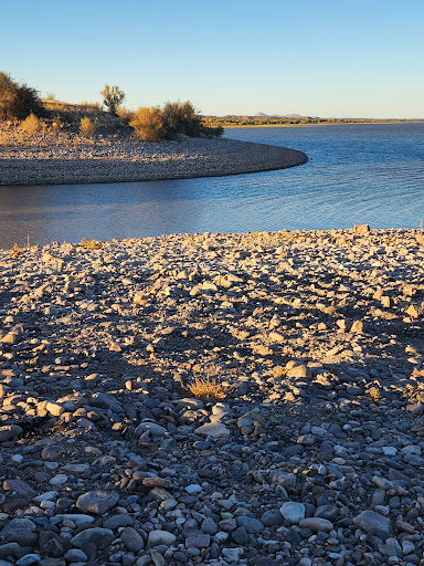 This much smaller state park has rocky (pebbles to soccer ball size) beaches (pebbles to soccer ball size), murkier water, and more spiders (but much fewer mosquitoes). The major draw - peace and quiet. Unlike Elephant Butte, there are many shady campsites that can be found under the canopies of majestic cottonwoods. Here, it's possible to sleep in until you are gently nudged into consciousness by the morning sunlight kissing your face and the calming lapping of the water onto the beach.