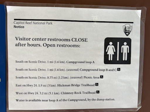 Read moreNot very friendly staff! We visited Capitol Reef NP in March. When my husband and I arrived there about 12:30, 10-15 people were waiting outside of the center because it was closed for lunch hour.(I called earlier but couldn't get the info about lunch hour.) We waited for about 30 minutes. The door was opened at 1:00. We bought NP annual pass there. The male staff who sold the pass to us treated us with a not very welcoming attitude, no talk, no smile, etc. We asked him about nearby campsite info, and all he said was "Campsites are all full" "Need reservation 6 months prior" "I don't have any other campsite info". We couldn't get any info from him. We had lunch at a picnic area near Fruita Campground and tried to think about what we should do next. We decided to look around the campground even though the visitor center guy said "fully booked". When we entered there surprisingly quite a few sites were available. We met very a kind host lady, and she let us take one of the available sites. If we trusted him fully and didn't stop by the campground, we might have to leave Capitol Reef, and head to the next destination. Very...