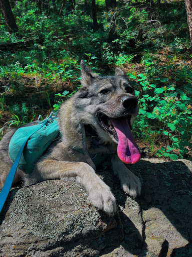 This trail is best enjoyed in early fall or summer when the ground is dry. However, be prepared for dust—one of our dogs ended up covered in it! A rag to wipe down your pups is essential. I carried 4 liters of water for the dogs and 32 ounces for myself, and by the end, we had almost no water left. A water bladder for easy access is highly recommended given the rocky and narrow sections.