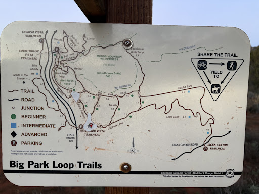 This is one of my favorite trails in Sedona. Relatively easy walk with wonderful red rock scenery. I enjoy it best in the morning, and recommend you arrive early (within a half hour after sunrise) because of parking. (Playing parking lot "lottery" is not how I enjoy my time!). I generally park at the southern most lot and as most people head directly toward Bell Rock, the Courthouse Butte Loop seldom has a lot of hikers. It is very enjoyable for that reason alone. Take you time, take lots of photos and just soak in the views. It loops back on to Bell Rock Trail and that circles around Bell Rock (climbing around on Bell Rock for those that are able is recommended for your inner child). 2 1/2 to 3 hours of time to fully enjoy.