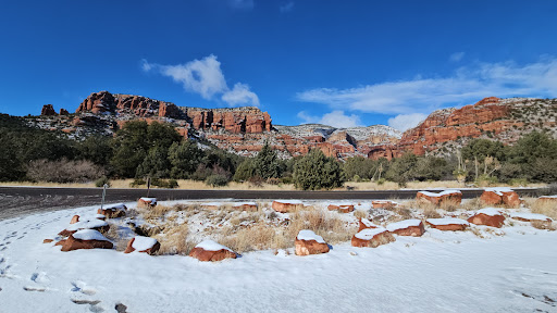 This is one of my favorite easy trails to hike in the west Sedona area. The pathway is well-marked and features gorgeous views of the red rock canyons as one goes further in. In addition, during rainy times of the year, the stream that runs alongside the path can fill up quite quickly for a beautiful contrast between the running water, the desert flowers, and the canyons in the background. This trail only takes about 30 to 40 minutes to hike at a fair clip and is about 1.25 miles one way, or approximately 2.5 miles to hike in total. Would definitely recommend this trail to beginners and/or anyone who doesn't want to deal with as much traffic as more populated trailheads like Devil's Bridge or Doe Mountain but still enjoying great sights along the trail. As the included pictures suggest, the trail is especially breathtaking during the winter when fresh...
