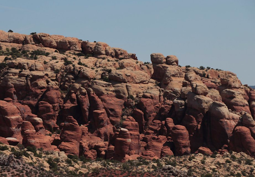 We very much enjoyed our 15 minute stop at this viewpoint. Bring binoculars and you can have better looks into the crevices that start to take shape at the towering fins. The deep 'reds' in the sandstone walls give the land formations intense and radiating colour as well. Its beautiful and remarkable to see, no less impressive than the many arches scattered round the park. You'll be glad you made time to stop here visiting Arches...