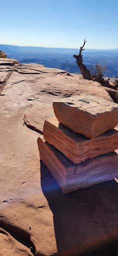 Read moreThe expanse. The sheer expanse. The 1.8 to 2 mi hike which takes you to the REAL "Grand View point" is not to be missed. It is a "down and back" trail. However I don't necessarily call it a super easy hike. If you have kids, they will definitely be complaining before you get to the end of the trail. Follow the Cairns! I would definitely recommend hiking pack with a water bladder and hiking shoes if you are going to make the trek. But well worth it. There is a mild to medium scramble at the very end if you want an amazing view of both sides of the Grandview point. The picture with the gnarly tree in the middle depicts the scramble to the final zenith. Cool little hike. Tip: If you want to do this hike, get to the park early and drive immediately to this place, or else you will likely have to circle several times to find a parking spot. It parks up rather fast. Hit everything else on your way back, including Mesa arch....