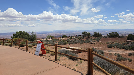 Read moreThis is the furthest point along Grand View Point Road before returning to the visitor’s center. There is a large oval one-way parking lot, with two separate, single-stall vault toilets. This location is extremely busy, and parking can be a complete nightmare and is only crazier during the peak season. This majestic vantage point is only a few hundred feet down a paved path from the parking lot and is a testament to Mother Nature's incredible craftsmanship, offering an unparalleled panoramic view that stretches as far as the eye can see. What stands out most to us was the sheer scale of this natural amphitheater, with towering cliffs plummeting over 1,000 feet and in the distance, you can see the Colorado River, which carved this magnificent landscape over millions of years. Finally, this is simply an amazing place to be as the sun begins to set, and the sky transforms into a riot of pinks, oranges, and purples, casting a golden glow over the rugged...