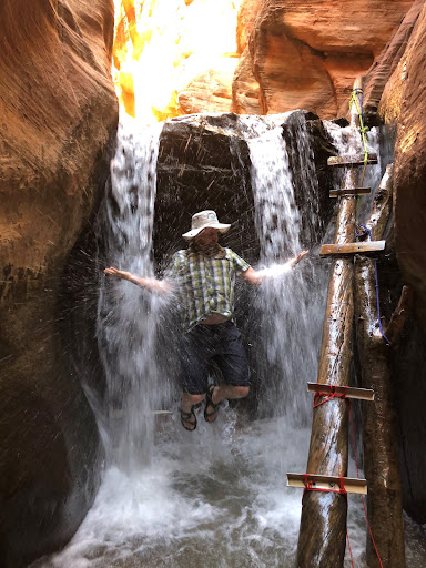 Once I got in the canyon I loved every twist and turn. I always love exploring slot canyons. They are so unique and inspiring to me. This one did not disappoint. It is not technical no wedging or crawling required. There are the two famous waterfalls that have large tree branches with rungs bolted (first ladder) or lashed (second ladder) onto them. As long as you are careful with your foot and hand placement you should be fine. NOTE: they are a little wobbly, wet and slippery. BE CAREFUL. I saw some people trying to get some little kids up the first and biggest ladder. They did just fine, minus the two little boys that got ācliffed outā and couldnāt move up or down the ladders without major coaxing.