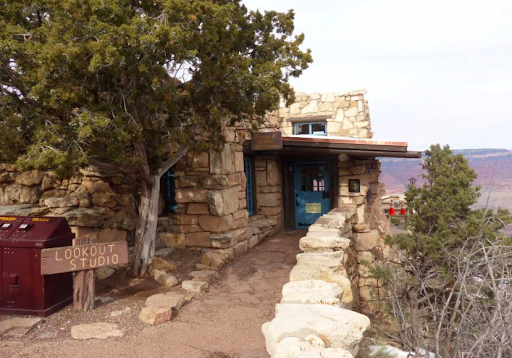 The Lookout Studio was designed and built in 1914 by Mary Colter and is one of the Grand Canyon landmark buildings worth visiting in the South Rim Village. Opening hours are seasonal (roughly 9am to 5 or 6pm) daily.