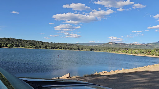 The Jackson Gulch Dam and Reservoir looks like it is suffering the same thing as the lakes in NM. Low water and nothing in sight to replenish it. Hopefully the snow melt this year will be helpful. The good part; this is an outstanding park. The sites are level, they are reasonably easy to back into/pull through, they are spaced far enough apart that you feel isolated to an extent. There are no electric, water, sewer hookups (at the sites we saw, 1-20), there is however a dump station with fresh water bibs located at key points throughout the area. This is also one of the parks that has Yurt rentals. We didn't look into that as we had the camper but did take a look at them. It looks like they will sleep 6, has electricity, and heat. Pretty cool actually. As anyone who has looked at our reviews knows' the dogs are always there. They had a blast playing in the water, running through the meadow and just being dorky dogs. There is a mandate on keeping your dogs leashed as they have had problems with dogs not being properly attended and the rangers do make sure you're minding the rules. Not a problem if you're a responsible pet owner. Went fishing in the afternoon and managed to get a few bites with standard crankbait. I was too slow on the uptake and missed some decent sized trout. Overall this was a most excellent stay and we plan on coming back to this one. I almost forgot to mention, this is one of the state parks that also stays open year round with some of the sites maintained and open even in winter. Big...