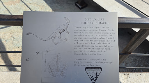 Read moreThe tracks are located off BLM 215 (Cotter Mine Road) near the Courthouse Rock Campground. There is a dirt parking lot, several interpretive displays, and a more primitive vault toilet close to the trailhead to the track site. Take the trail approximately 800 feet to the actual dinosaur tracks. This really is an amazing site to see as you are transported back in time to the early Jurassic period. According to one of the display boards, the trails are dotted with over 1,000 dinosaur footprints perfectly preserved in the sandy stone. It is best to visit this site in the early morning or late afternoon, because of the angle of the sun’s reflection, which makes it easier to see the tracks. Finally, we recommend when you are done here, to continue up the valley to the Mills Canyon Dinosaur Trail for a short 1.2-mile hike to see fossilized dinosaur bones and then take in a view of the...
