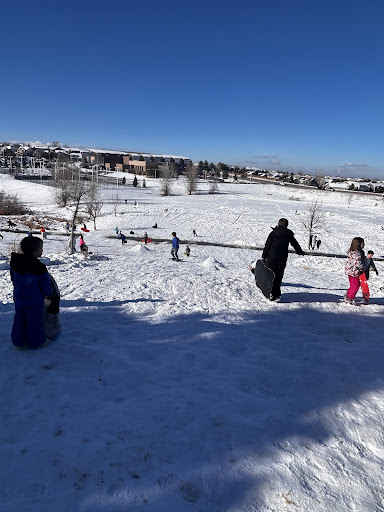 Fun little park. Two sections, one for smaller kids. There is a swing set, too. It has tables under a pavilion and a restroom. It has a drinking fountain as well, but it is not always on. There is also a field. It is sometimes used for soccer, and there is a baseball diamond in the corner, along with dugouts. Sidewalks connect to the rest of the trails, and one sidewalk leads straight over to...