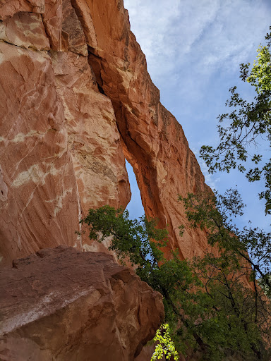 Β Β Β Read moreItβs a pretty cool arch to visit if youβre in the area although itβs a little bit of a drive from the main road. While youβre here if youβre looking for The sun or the moon itβs carved in the rock thereβs not much info about it so I attach some pictures with a red arrow. If you look from the parking area straight into the canyon off to the right hand side thereβs a black mark on the sand stone from where the waterfalls. If you like towards that black mark and then find a route up even though they can be a little sketchy you will then find at the bottom of the waterfall the sun. Some people reported there being a rope of some type although as of December 2020 there is no longer a rope anywhere to be found thereβs a few little sketchy places you can climb up and get to the top...
