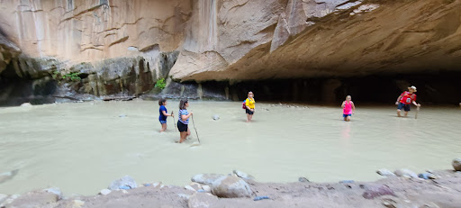 Read moreARRIVE EARLY....gets really busy.Beginning riverwalk is fun and flat but once you get into the narrows it becomes a Great challenging hike made it to fork in the river about 2-3 hours to this location with an 8 year old. She had fun and is not much of a hiker . Bring plenty of water a snacks . No restrooms on the trail but there will be one once you arrive there by shuttle stop #9, along with water refill station and shoe cleaner . Boots and walking sticks a must water proof as much as you can because you will get wet. In some areas water came up just above my knees and I am 6ft 1 inch, but usually mid shin depth. Recommend renting equipment. Many sized rocks that can trip you up if your not careful. Color of water you see is the day after rain so lots of dirt in water. Most pictures I have is clear water so I was surprised. Be mindful of weather as flash floods can be dangerous. Well worth it for a...