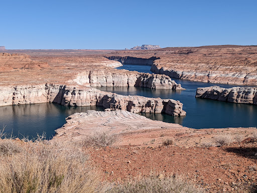 Read moreThis viewpoint just off Lakeshore Drive provides for a much closer look from the western side of Lake Powell before reaching the Wahweap Marina. After turning off Lakeshore Drive, follow the road around a small rock outcrop to the viewing area parking lot. At the viewpoint, there is a small, covered pavilion with two park bench seats for enjoying the view out of the sun and is a great place to watch the sunrise over Lake Powell. Next to the pavilion there is an interpretive display with information about the area in front of you. However, this viewpoint and the Navajo Mountain Viewpoint have limited views of the overall area when compared to the...