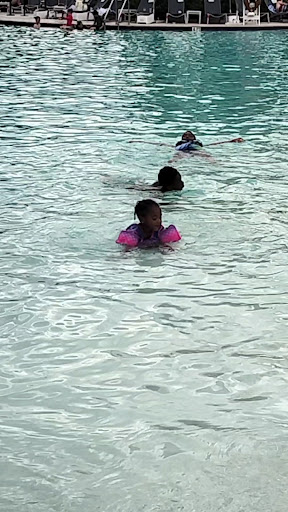 The thing we absolutely loved the most was the Flow Rider at the small waterpark. The instructor that my kids had was absolutely amazing and made sure my kids had a blast during their 30 minute ride session. He also stood on the board with them and let them wear his sunglasses and hat and would splash the parents watching, which the kids loved obviously lol. My kids also loved the hair wrap station. The girls working at it were very kind and did a great job.
