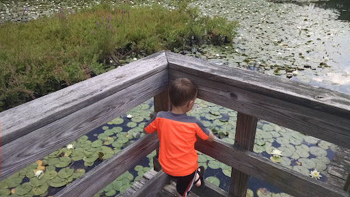 Read moreWho would have thought such a quiet serene spot was located just a bit away from the noise and rush of the surrounding mall, restaurants and football stadium. This is a delightful easy stroll over a gravel walkway. It takes you first around and through ponds that seem to always have some form of wildlife: both around and IN the ponds. (LOTS of turtles!) Then you come out and see a beautiful expanse of manicured bog. Take time to read the explanatory signs. The trail then continues and loops back around through a tree-canopied trail. Great place to bring young children. You can walk your dog:though on a lead and bring your own bag (s) to pick up after them, as I didn't see any offered. Lots of parking avail. and at the entrance is a relaxing seated area in the shade with a waterfall feature....