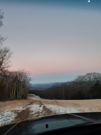 It's a nice ride to the top but the best views are from the gas pipeline right-of-way just below the summit looking East. The dirt road is easily navigable with a passenger vehicle - no four-wheel drive needed in good weather except for the last 100 yards. I could still do it with my passenger car... it's got a few rocks you just have to navigate over them carefully. Two dirt roads continue beyond summit to the west. It appears the left one at the Y goes to the east/backside of Seneca Rocks and the right fork to Yokum Stables area but we did not explore down them although they looked well traveled (for a dirt road). Part way up is a remote campsite and trail access to North Fork...