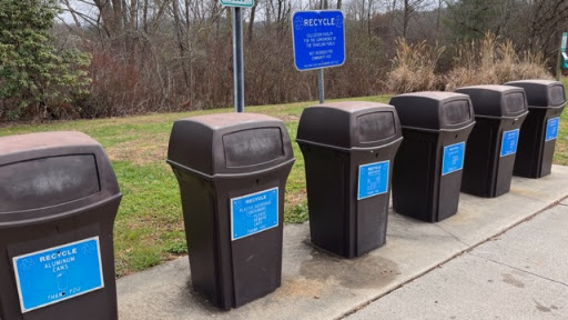 As we ambled down the stairs to our car, we passed the blue recycling and trash cans. No excuse NOT to recycle and no one should be littering with these blue bins...