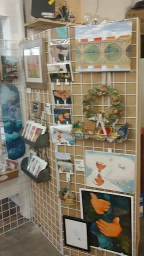 My hubby and I visited this place a while back and stopped by again recently. The lady working there had big beef with the coffee shop that used to be open in the space, which was awkward and uncomfortable for us to hear her talk about. She talked with a 'kill you with kindness' kind of way that put my hair on end. I didn't buy anything, but I enjoyed perusing the paintings, pottery, cards, and other art they had. Visited again recently without the hubs and the coffee shop isn't back yet (wonder why!) and it looks like they may be moving out. There was a lot more art in there the second time I visited, which was pleasant, but I didn't stay long becuase the same lady was there again. I got the impression she owned the place but I may be wrong. Cool wood art and metal art on the walls.