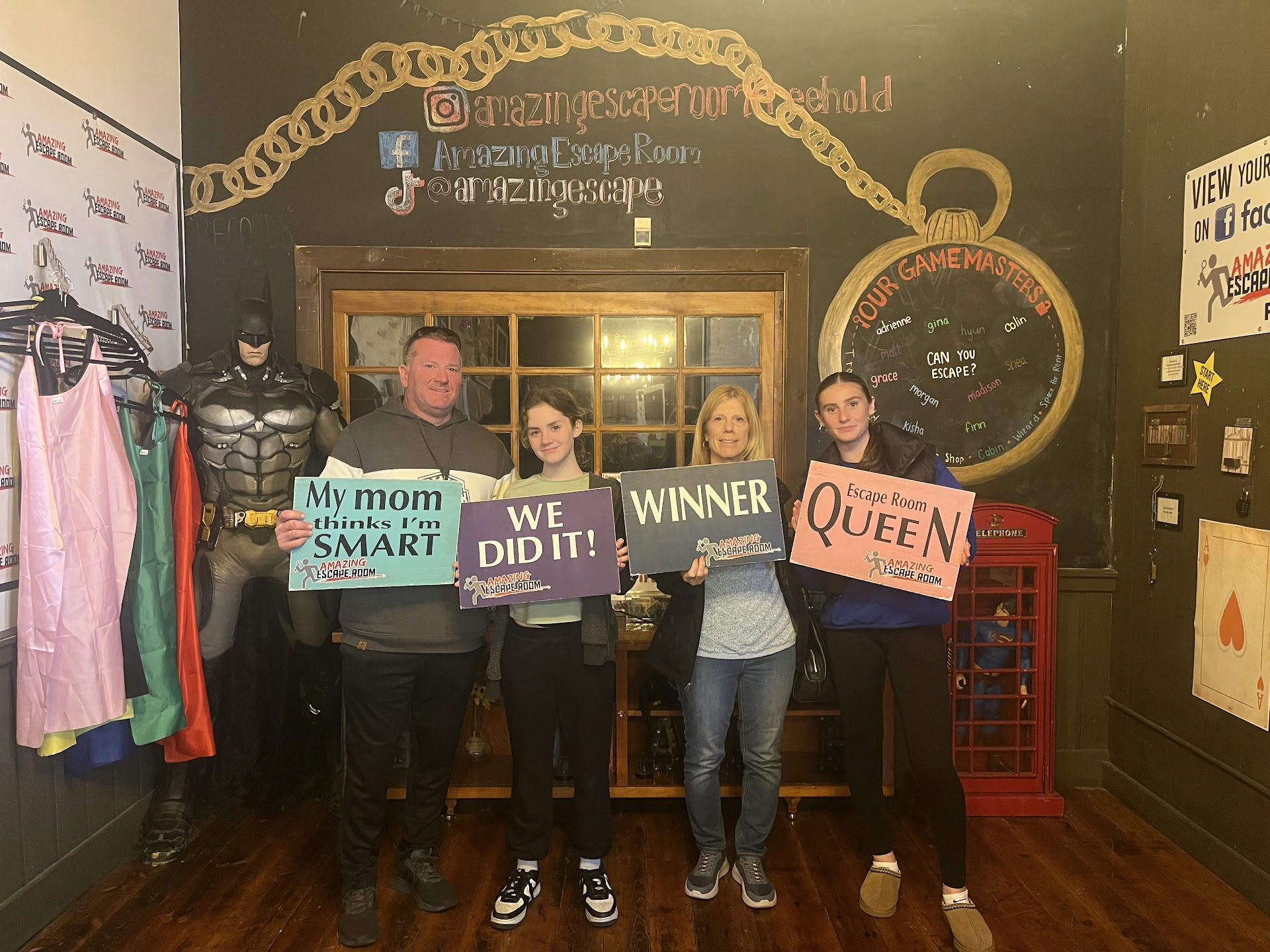 Read moreWe were eight adults who have been to and enjoy the fun of escape rooms. At this location we did the great train heist. We had about 18 minutes left and asked for a clue because we were stumped on several parts. You are allowed 3 hints during the game. They gave us a clue of something we had completed already and we were frantically (in a fun way) asking for a clue that would help us. The same thing repeated itself for the next 2 hints. Giving us clues to things we already completed. Very frustrating!! We were have fun but my sons were annoyed. The rest of the time ran out as we were trying to get to the next steps. When the person who showed us the room in the beginning came in to tell us our time was up, we expressed our frustration but she said she was not the game master and could not explain why we weren’t given the proper hint. She did spend a few minutes with us showing the last few clues to us. However, and a HUGE disappointment, was she told us that you can’t really figure out the clue we were having a hard time with is because it was done wrong and needed a hint!! I hope the other challenges in this location prove to be more fair. We’ll choose a different...