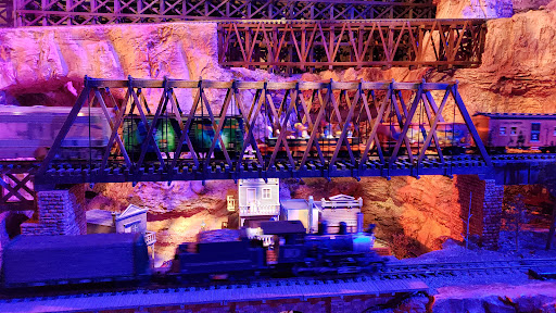 The main rail display is very large G scale, 1/25th scale, layout that is very well detailed 1960, era. Again, while our grandchildren did not understand many details, like the outdoor theater, that actually projected the movie from the concession house or the actual outdoor theater speakers providing the movie soundtrack. Our grandchildren were full of questions about what was being shown throughout the layout. The kids also liked the little touches like Munsters car and the dinosaur. There is also a scavenger hunt of the layout that can be done of items...