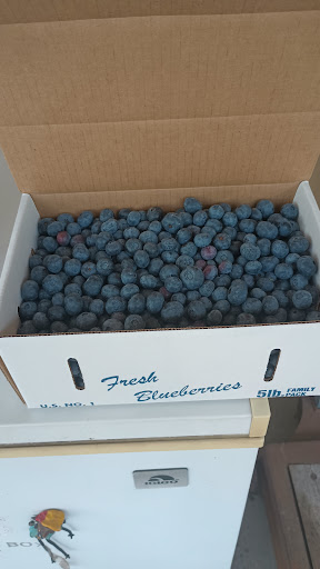 We we're actually just driving by because we camped 4 days already, and we had a 3-hour drive to go. The owner told me to come pick, because I told him I wanted to but I did not have time because I had to get on the road to go back home, so problem solved, he offered to sell me pre-picked pre-packaged blueberries $22 for 5 lbs of the most delicious Blueberries and we walked the farm.. too bad for us that we didn't take time out of our beach time to enjoy self-pick, because I really enjoy picking...